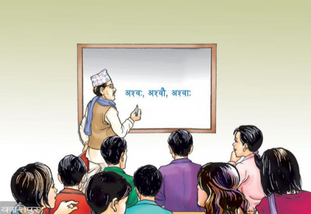 कुनै पनि विद्यार्थीमा उपर्युक्त पाँचवटा लक्षण हुनुपर्छ भनिन्थ्यो, सानामा हामीलाई । अर्थात्, कागको जस्तो जान्ने कोसिस, बकुल्लाको जस्तो ध्यान, कुकुरको जस्तो निद्रा, आवश्यकताअनुसार थोरै खाना र ज्ञानार्जनका लागि घरको त्याग । मलाई लाग्छ, चार कक्षादेखि अनिवार्य रहेको संस्कृत पाठ्यक्रमले हामीलाई आफ्नो परम्परा र संस्कृति बुझ्न धेरै सहयोग गरेको थियो । केही वर्षयता भने पाठ्यक्रममा परिवर्तनसँगै संस्कृत भाषाको पहिचान धरमर हुँदै गएको छ । खाना खानुअगाडिको भन्नुपर्ने मन्त्र ‘हरिर्दाता हरिर्भोक्ता हरिरन्नं प्रजापतिः / हरिः सर्वशरीरस्थो भुङ्क्ते भोजयते हरिः’ आज परिवर्तन भएर ‘ओह गड, थ्यांकयु फर द फुड’ भएको छ ।